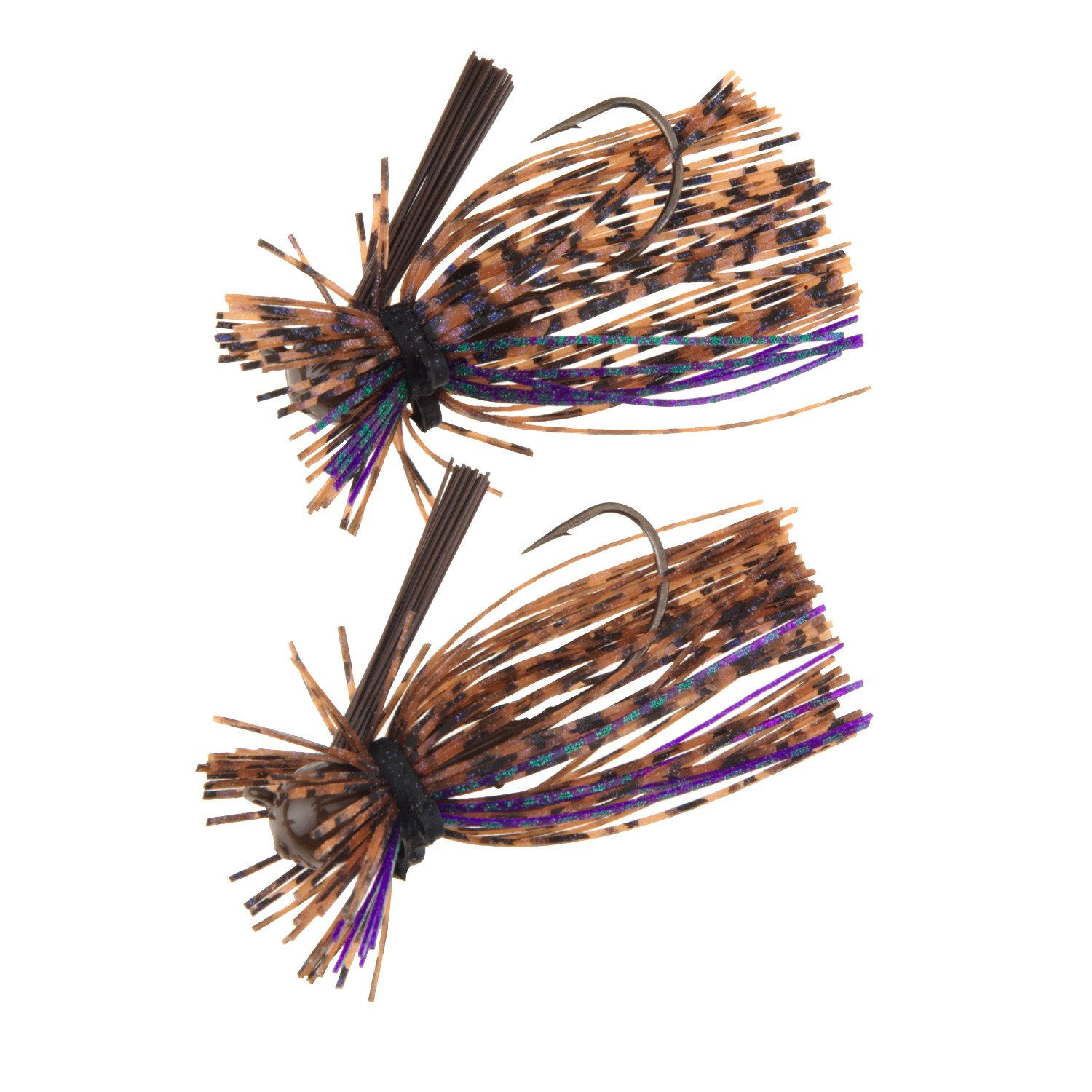 Fish out in the open or near the weeds with the Jewel Eakins Bass Jig 5/16 oz 2-pack that features a fiber weed guard that allows you to fish effectively near heavy cover. The Mustad Ultra Point black nickel hook secures your catches, and the hyper flare skirt offers realistic action. This freshwater bass jig has a chip-resistant powder-coat finish.