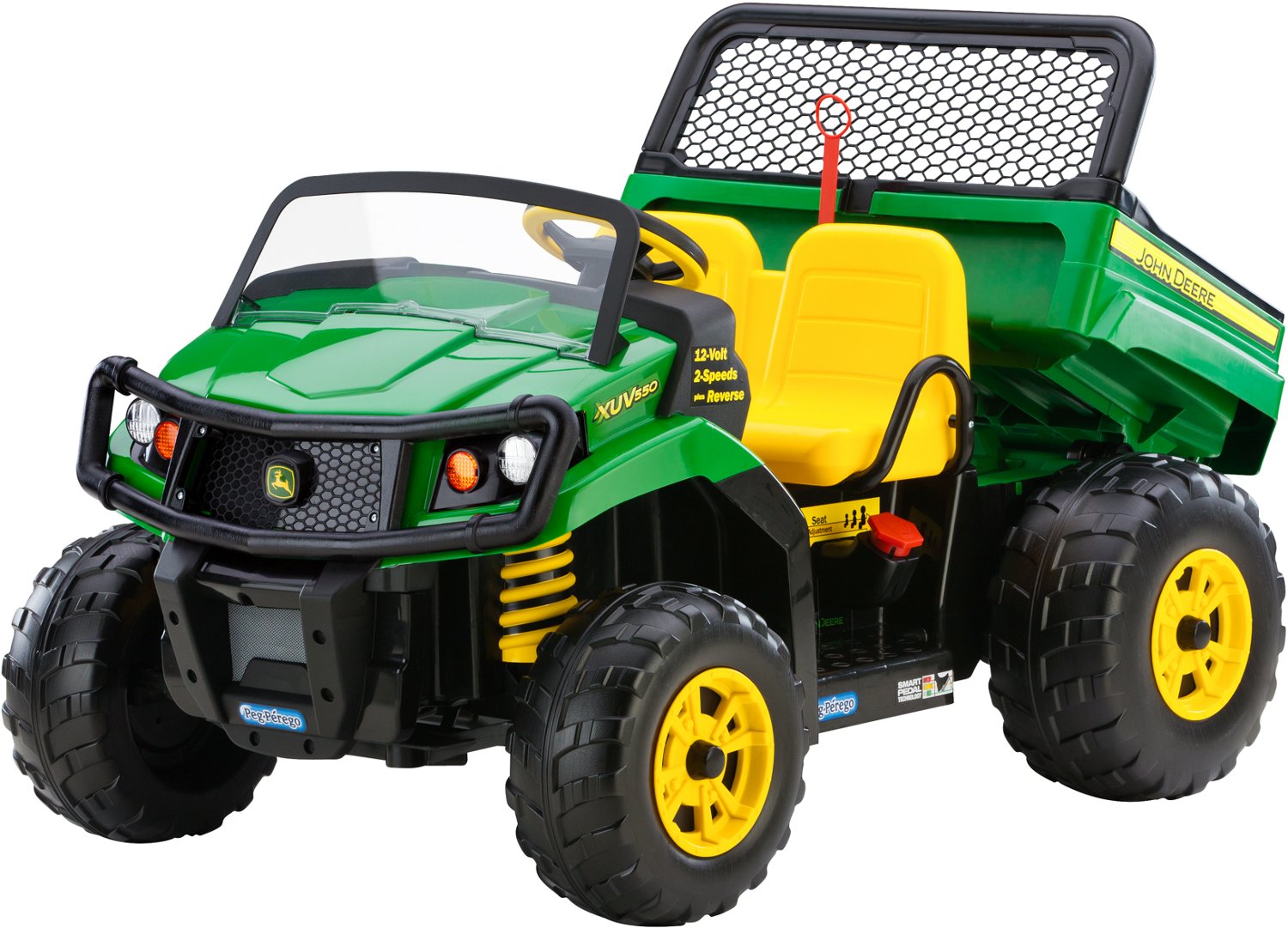 Little ones can be just like dad with the John Deere 12 V Gator XUV Ride-On. This kid-friendly ride-on has a maximum speed of 4.5 miles per hour with a top-speed lockout on the gear shifter to keep them from going too fast. The traction wheels ride smoothly on hilly grass or gravel, and the seat adjusts to fit their height. With realistic details such as a brush guard and dump bed, your kids can let their imaginations run wild.