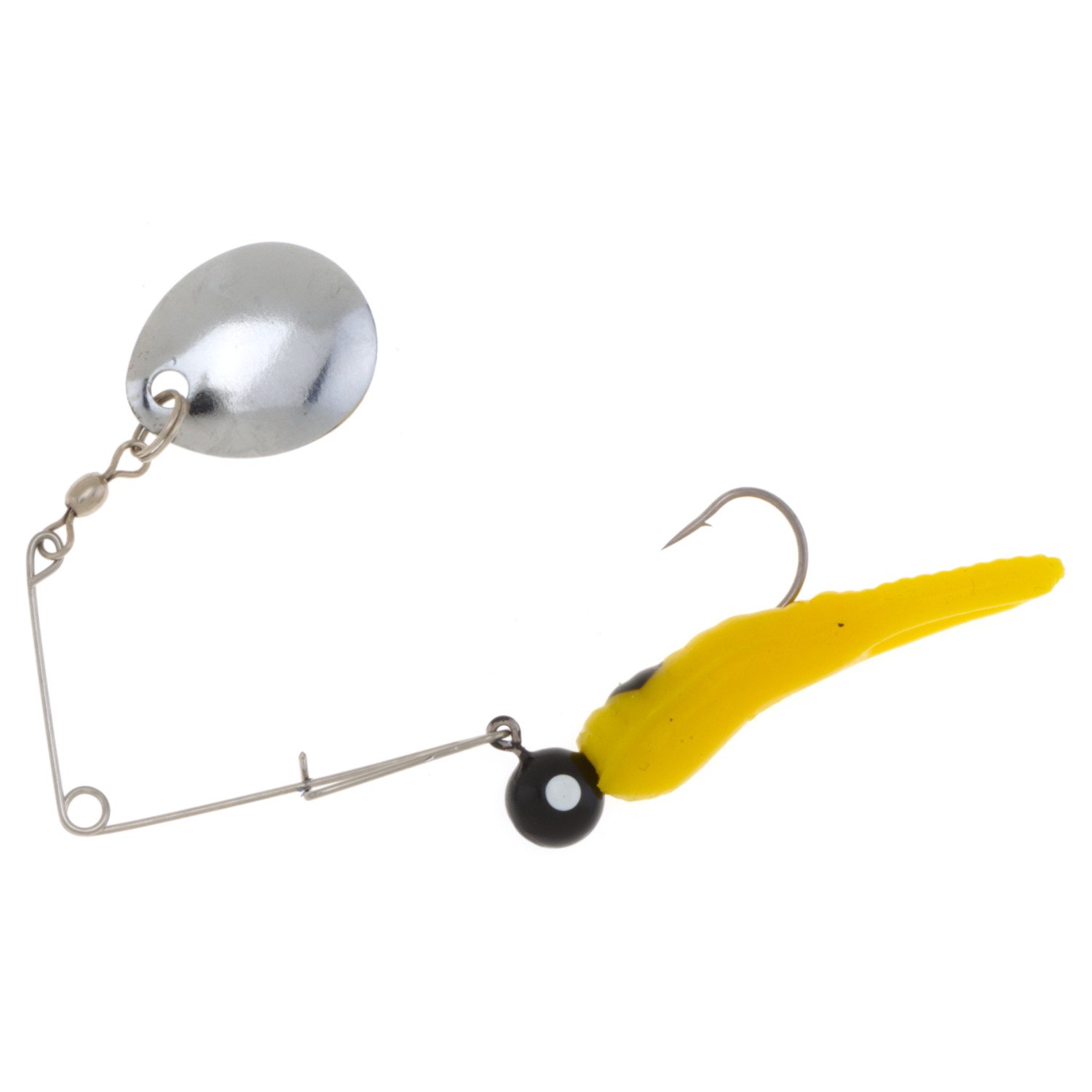 This Johnson Beetle Spin 1/8 oz Lure is a spinnerbait that doubles as a plain jig for deepwater presentations by easily removing the spinner. The lure has a bright safety pin for visibility and to attract bites.