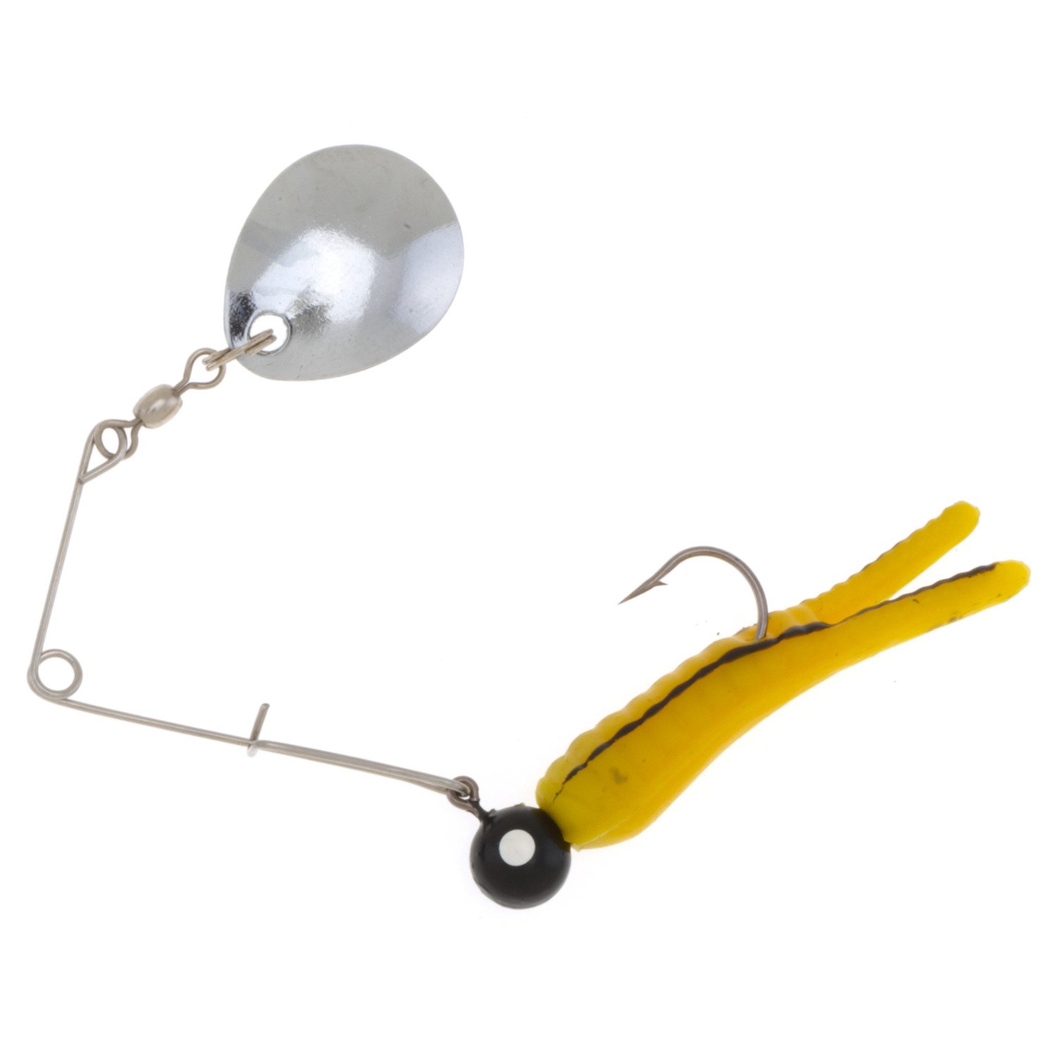 This Johnson Beetle Spin 1/8 oz Lure is a spinnerbait that doubles as a plain jig for deepwater presentations by easily removing the spinner. The lure has a bright safety pin for visibility and to attract bites.