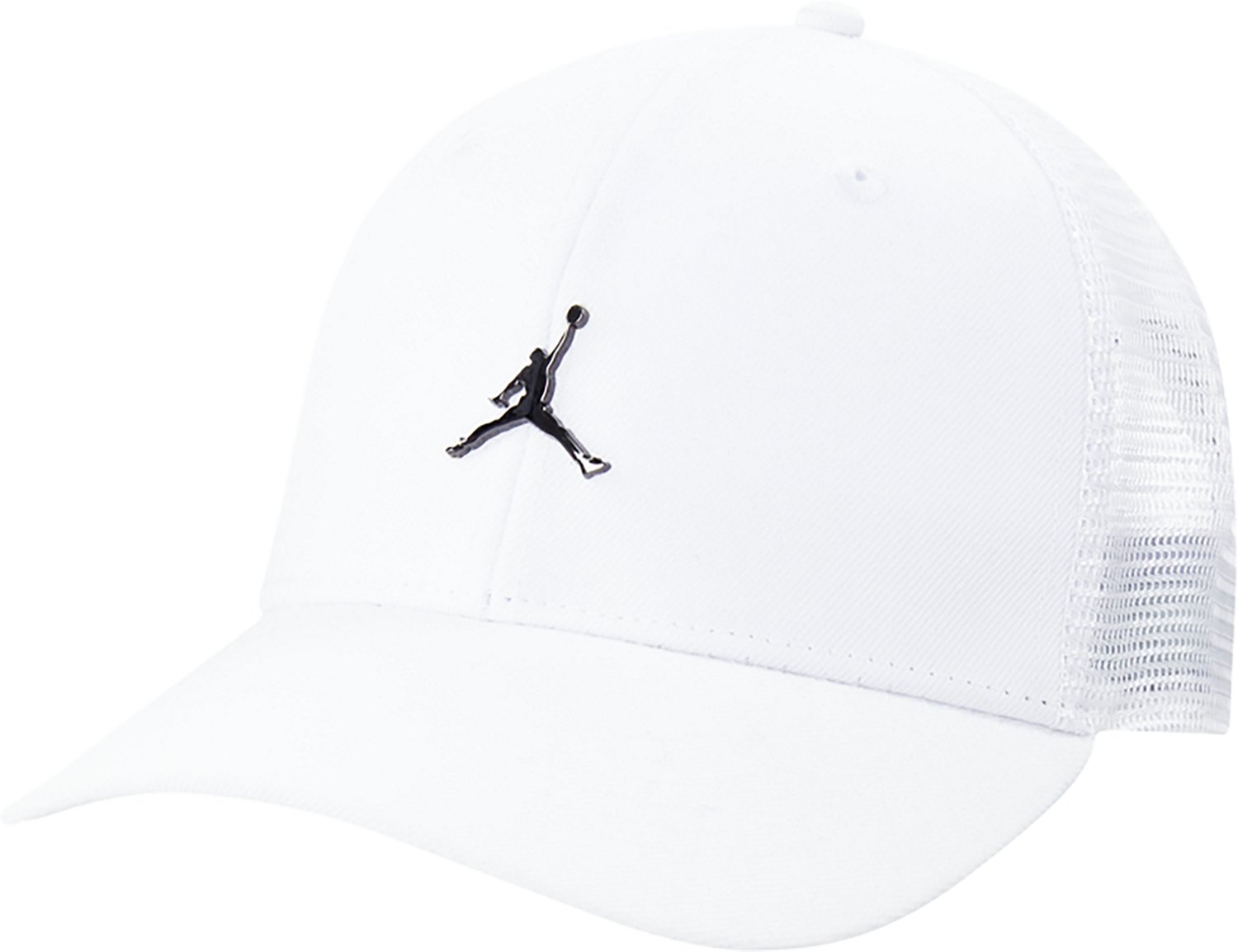 Play like a pro with the Jordan Boys' Metal Jumpman Trucker Cap. The poly twill fabric provides a comfortable feel, while the embroidered eyelets promote breathability. The snapback closure offers a custom fit, and the metal Jumpman design adds a stylish touch.