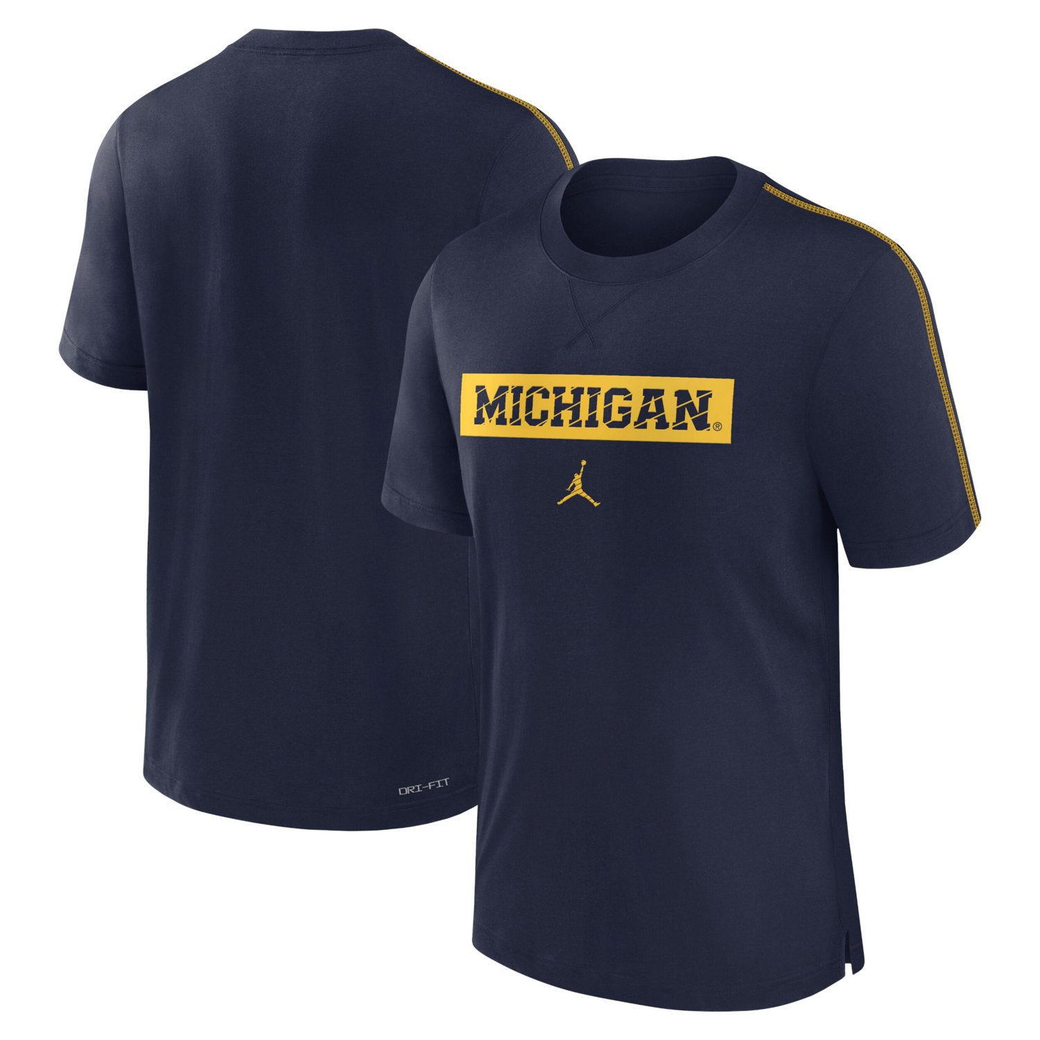 Elevate your Michigan Wolverines game day look with the Jordan Brand Sideline Player Performance Tri-Blend T-Shirt Replicating the gear worn by the players coaches and team staff this tri-blend tee delivers an extra-soft feel for superior comfort This tee is a must-have for any Wolverine fan looking to rep their team in comfort and style whether cheering from the Big House or watching from home