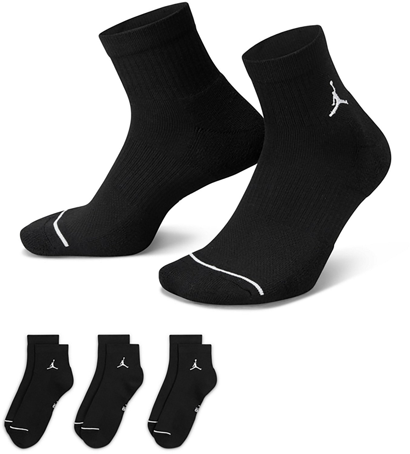 The Jordan Everyday Cushion Ankle Socks 3-Pack offers superior comfort and support for daily wear. Crafted with soft, breathable fabric and strategic cushioning, these socks provide a snug fit and enhanced comfort, whether you're working out or lounging. Featuring the iconic Jumpman logo, they combine style and practicality for everyday use.