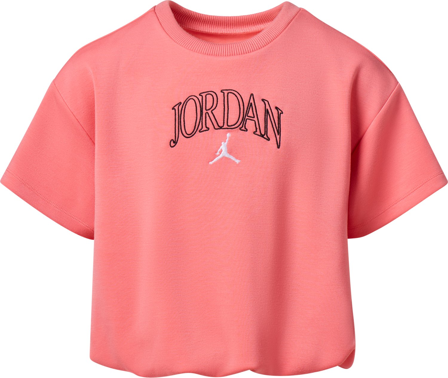 Experience the joys of friendship with the Jordan Girls' Flower of Friendship Knit Top. The polyester and elastane material provides a comfortable feel, while the elastic bubble hem delivers a cropped look. The screen-printed graphics add a stylish touch.