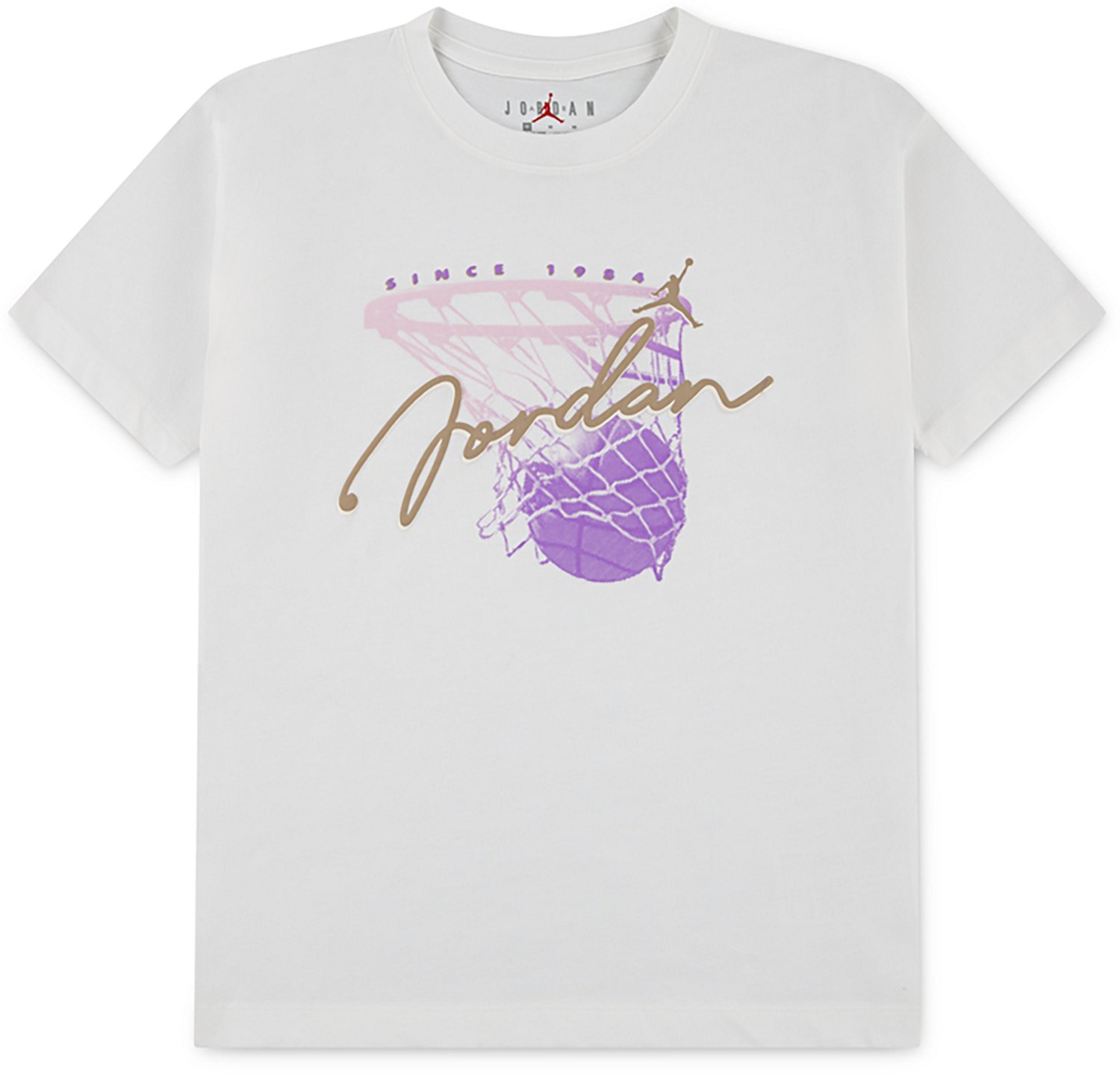 The Jordan Girls' Hoop Classic Short Sleeve T-shirt combines sporty style with everyday comfort. Crafted from soft cotton fabric, it features a sleek, minimal design with the iconic Jumpman logo, making it perfect for both casual wear and athletic activities. This versatile tee offers a relaxed fit, ideal for girls who want to look cool while staying comfortable.