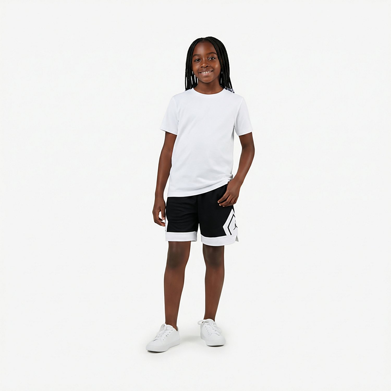 Reach for the net with the Jordan Girls' Sport Dri-FIT Diamond Shorts 4.5 in. The polyester material provides a comfortable feel, while the Dri-FIT technology helps keep you cool and dry. The stretchy waistband and drawstring combo offers a custom fit, and the Jumpman logos add a stylish touch.