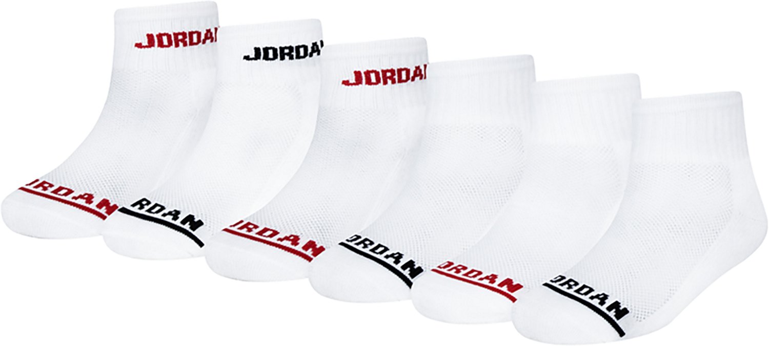The Jordan Kid's Legend Ankle Socks 6-Pack combines comfort and performance for active kids on the go. Crafted with soft, breathable fabric and a cushioned footbed, these socks provide support and comfort during sports or everyday activities. Featuring the iconic Jordan logo, they offer a stylish and practical addition to any kid's wardrobe.