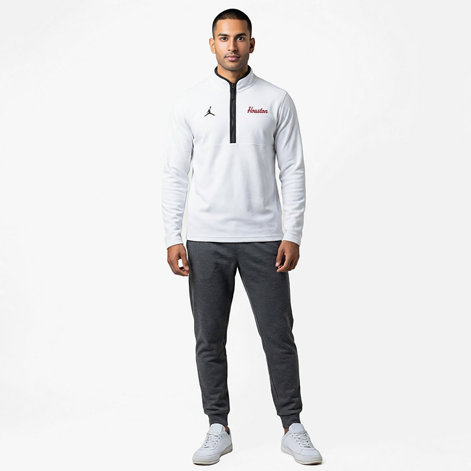Stay warm at the next Cougars tailgate in the Jordan Men’s University of Houston Blue Out Dri-FIT Victory 1/4 Zip Pullover. It’s made from 100% polyester with moisture-wicking Dri-FIT technology to help you stay dry, and the team graphic adds a stylish touch.