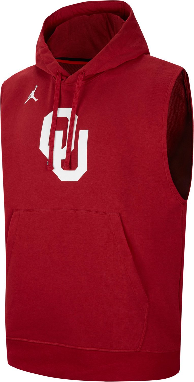 With the Jordan Men's University of Oklahoma Dri-FIT Fleece Sleeveless Top in your collection, you have a go-to outfit for the next Sooners game. The shirt is made of cotton and polyester to offer a soft feel and features an OU team design that is sure to help get other fans excited for the upcoming season.