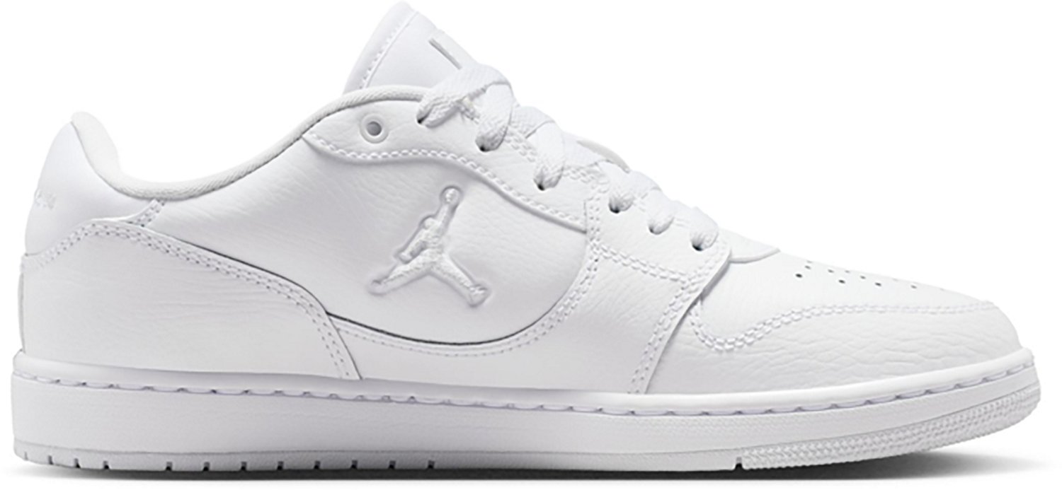 Look your best when you wear the Jordan Women's Court Connect Low Shoes. The genuine leather in the upper offers durability. Their Nike Air technology absorbs impact for cushioning with every step, and the rubber outsole creates traction. Their low-cut collar offers a lighter feel.