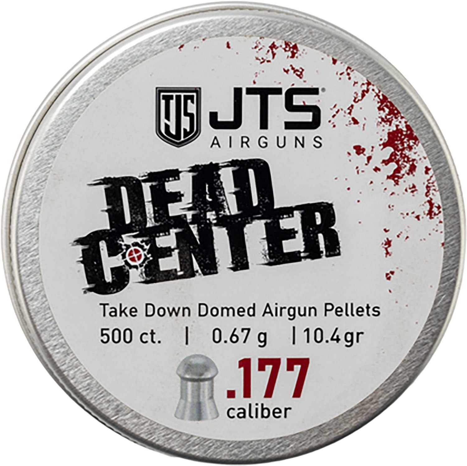 The JTS Dead Center Precision .177 Domed Pellets - 500 Rounds are .177 caliber and weigh 0.67 grams.