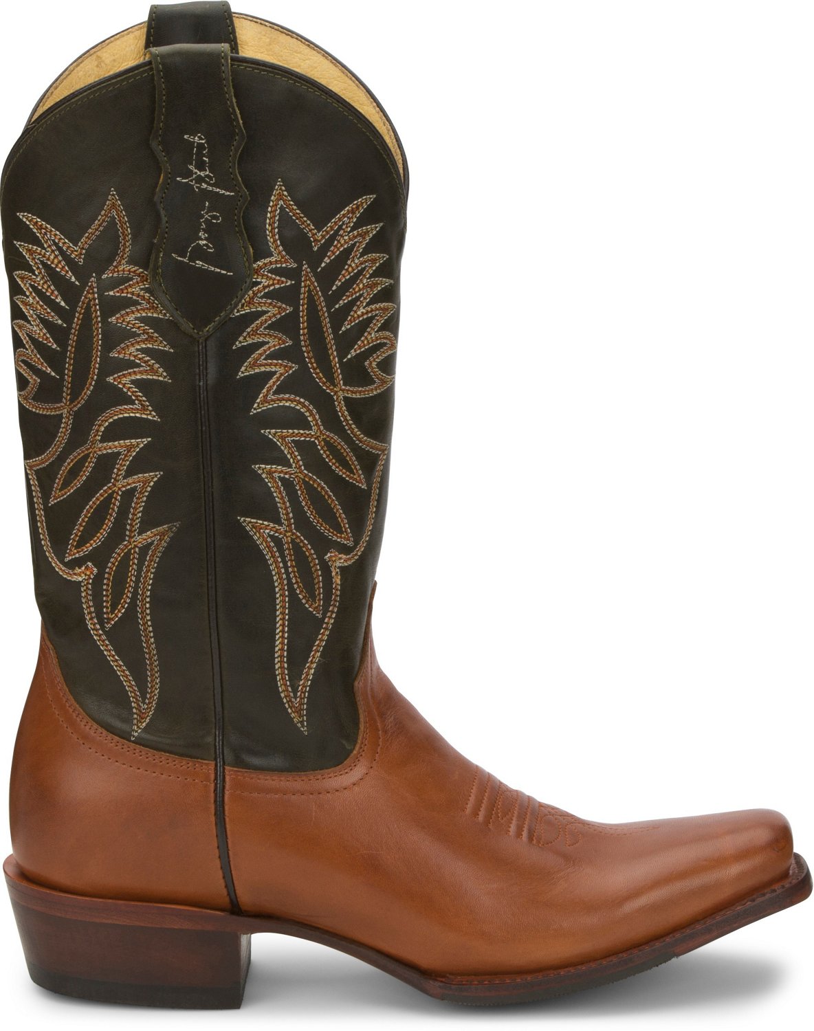 Stylish design and comfort come together on the Justin Men's George Strait Del Rey Western Boots. The cowhide leather uppers provide durability and the King Comfort System insoles supply cushioned, comfortable wear to your feet, while the George Strait leather and rubber outsoles deliver consistent traction and the color-contrasted flame stitch design adds a bold appearance.