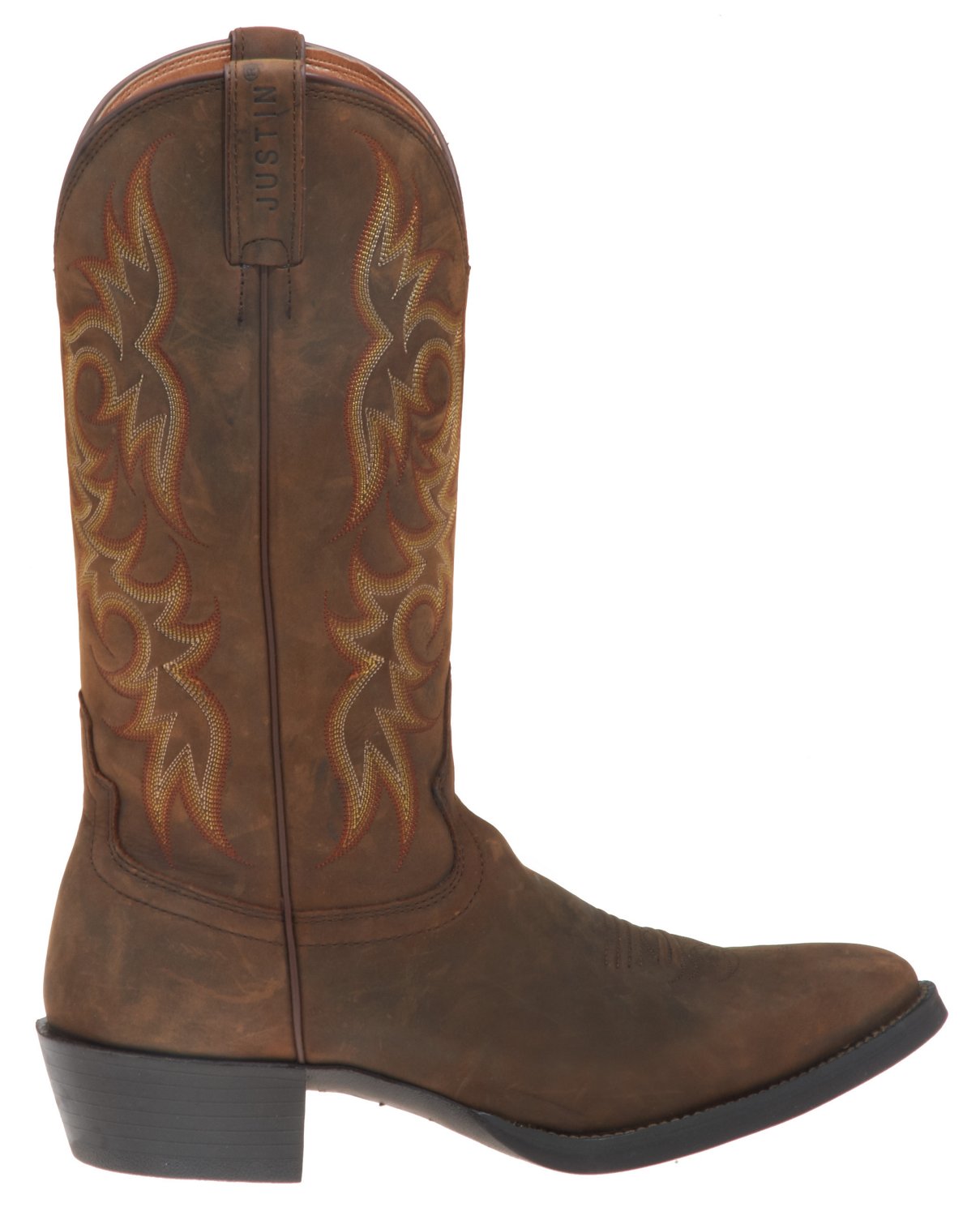 Step out in style in the Justin Men's Stampede™ Cowboy Boots. Designed with leather uppers with single-stitched welt construction, the boots provide lasting wear. Technical rubber outsoles offer traction and a great grip, and the J-Flex Comfort System® in the insoles and Stabilization Technology® keep feet comfortable. Round toes and heel units. 13" tops.