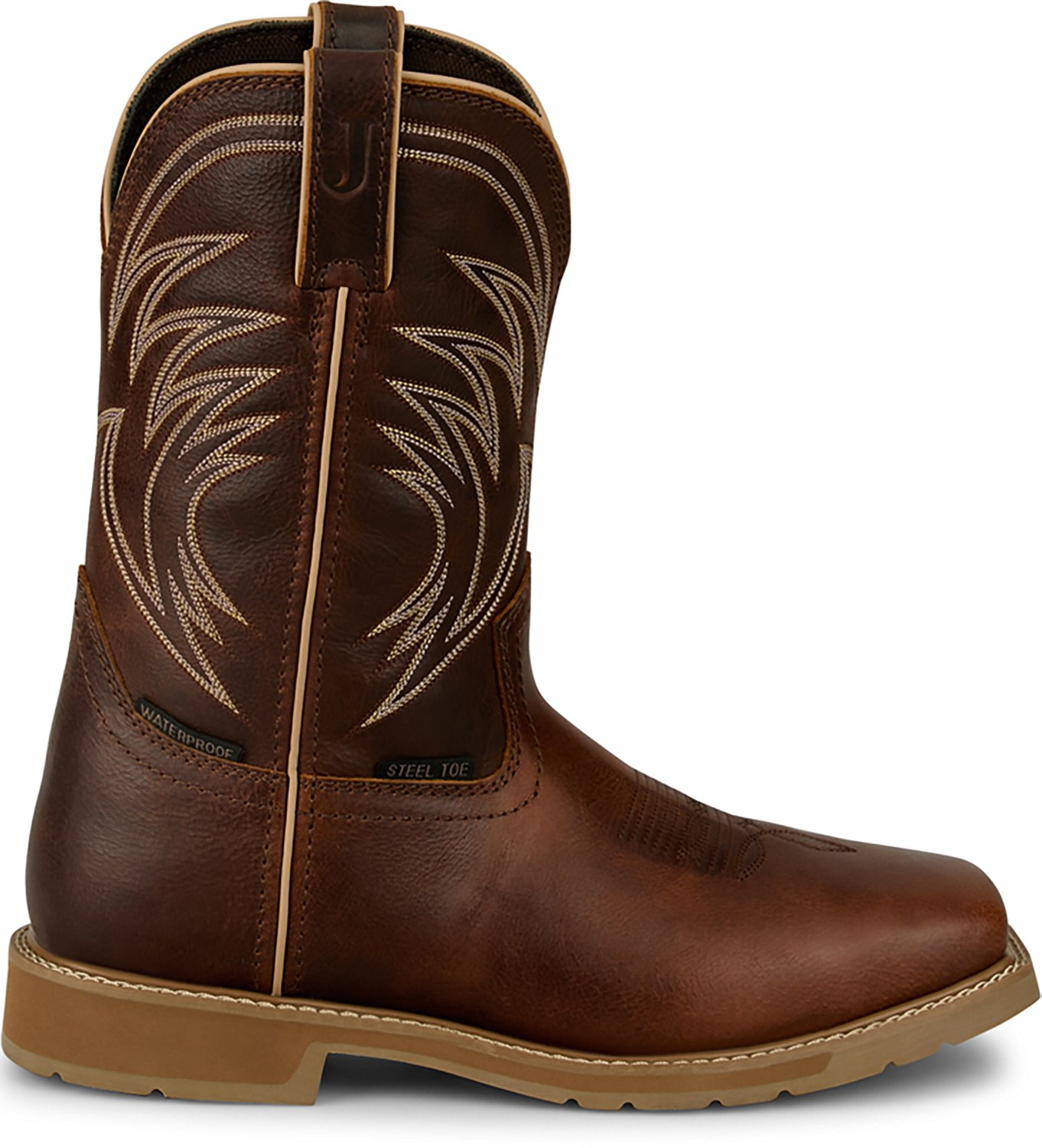 Experience comfort and protection on the job with the Justin Men's Stampede Daywork Steel Toe Work Boots. The leather uppers are rugged and water-resistant, and the steel safety toe delivers extra protective coverage.