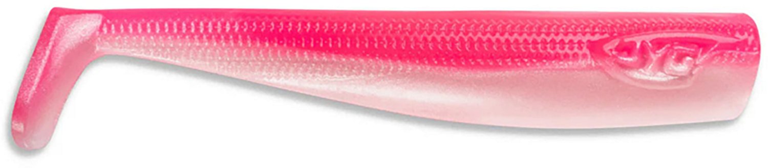 Fish for bass, snook and more with the JYG Pro Swym PaddleTail Jigs 6-Pack. The soft plastic construction affords durability, while the triangular body and large paddle tail create lifelike swimming motion for increased attraction. The glow-in-the-dark design promotes visibility in low-light and deep-water environments, and the EZ-RIG system allows for secure rigging.