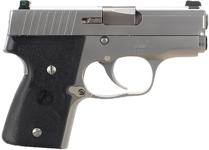 The Kahr MK9 Standard 9mm Luger Pistol is crafted out of stainless steel with polymer wraparound grips. Its polygonal barrel is rifled and measures 3 inches long with adjustable sights. Thumb safety.