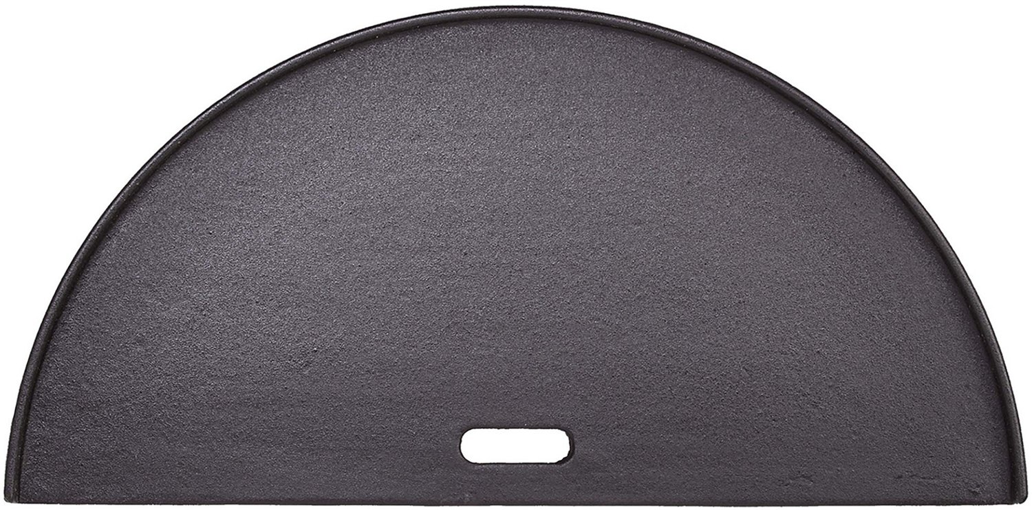Perfectly sear meat and seal in flavor with a Kamado Joe Classic Joe Half Moon Cast Iron Reversible Grill Griddle. The reversible surface features a ribbed side for searing and a flat side for griddle style cooking. The durable cast iron construction retains heat well and scrubs clean for easy maintenance between meals.