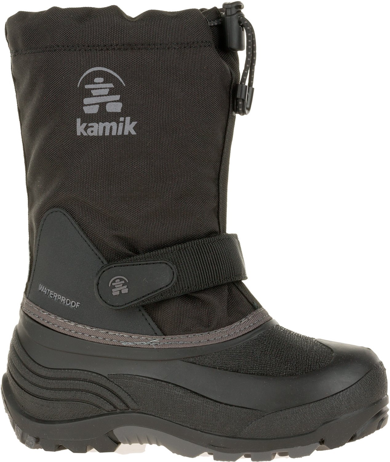 Stay warm and comfortable this winter in the Kamik Kids Waterbug 5 Boots. These boots feature seam-sealed waterproof nylon uppers for durability that stays dry. The adjustable midfoot hook-and-loop straps with easy-grip rubber tips provide a secure fit, while the SNOWAVE outsoles with multidirectional lugs provide sturdy traction in the snow.