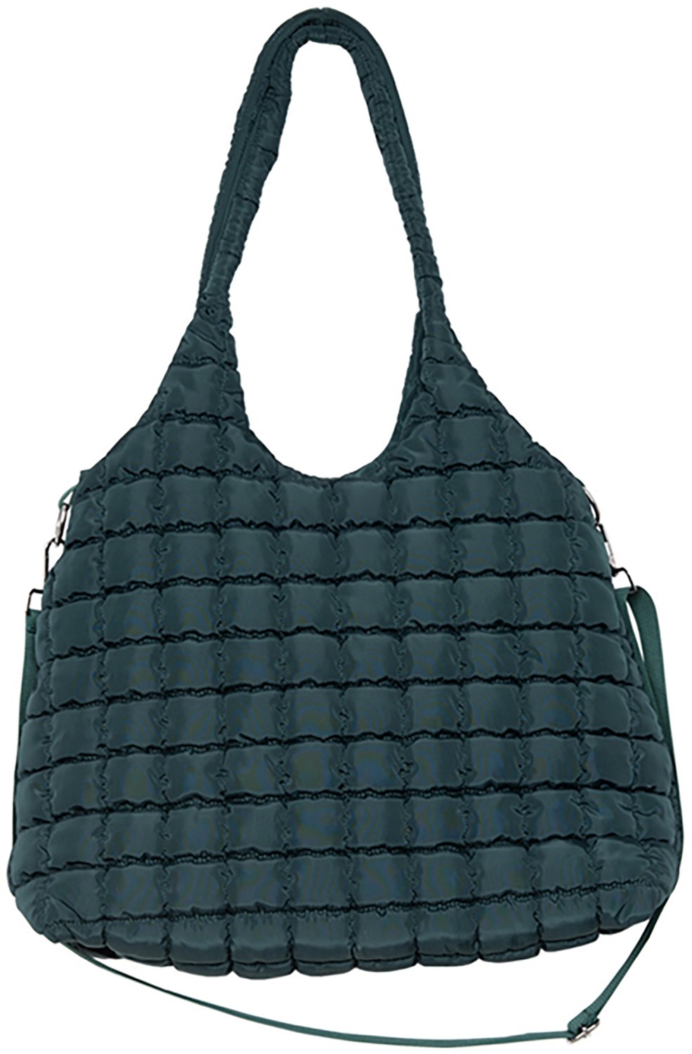 Add a stylish item to your on-the-go storage collection with the Katydid Quilted Tote Bag. Its high capacity gives you ample room for various objects, and its water-resistant interior lining helps to keep whatever you put inside safe. The two interior and exterior pockets bolster the bag's packing options, and the 27-inch strap simplifies carrying by hand or over the shoulder.