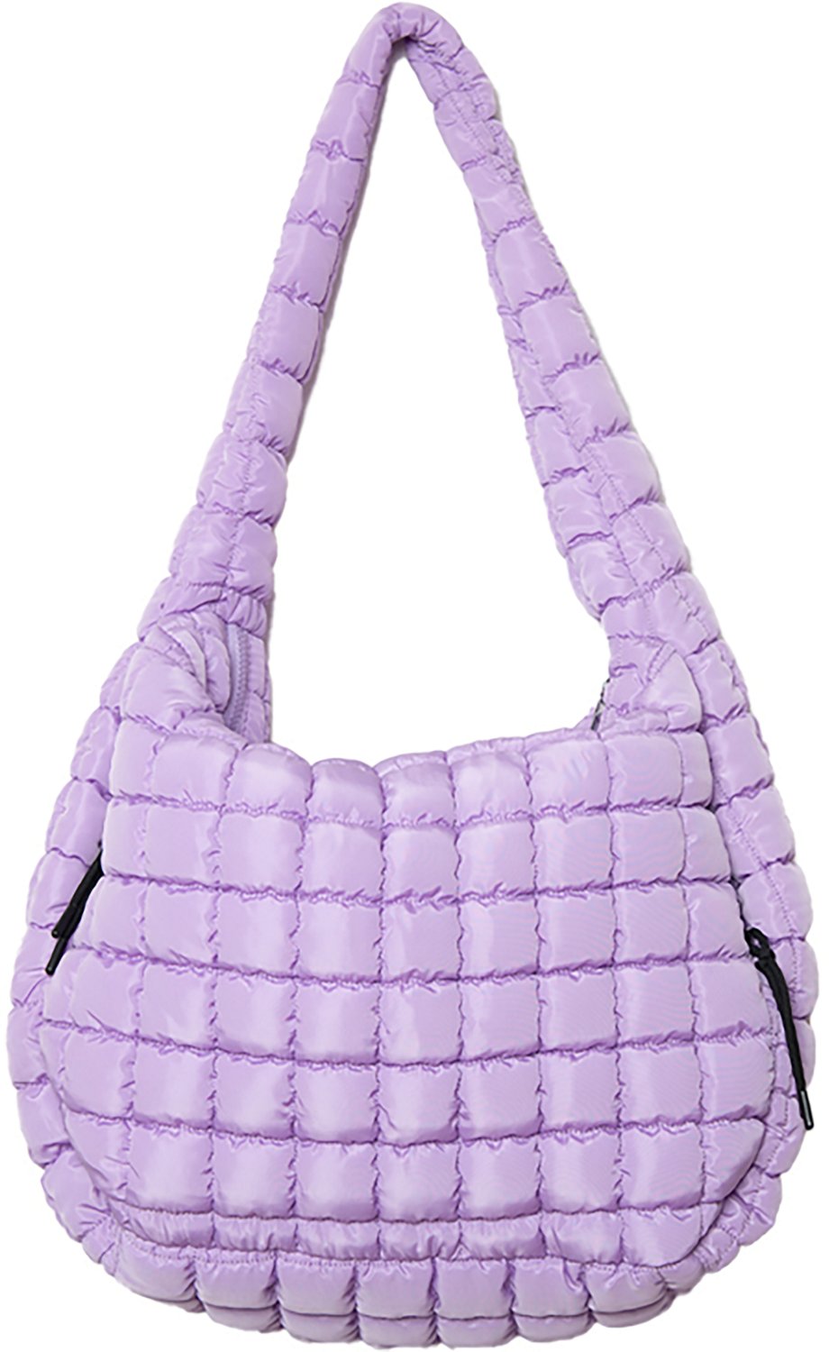 Add a stylish item to your on-the-go storage collection with the Katydid Quilted Tote Bag. Its high capacity gives you ample room for various objects, and its water-resistant interior lining helps to keep whatever you put inside safe. The two interior and exterior pockets bolster the bag's packing options, and the 27-inch strap simplifies carrying by hand or over the shoulder.