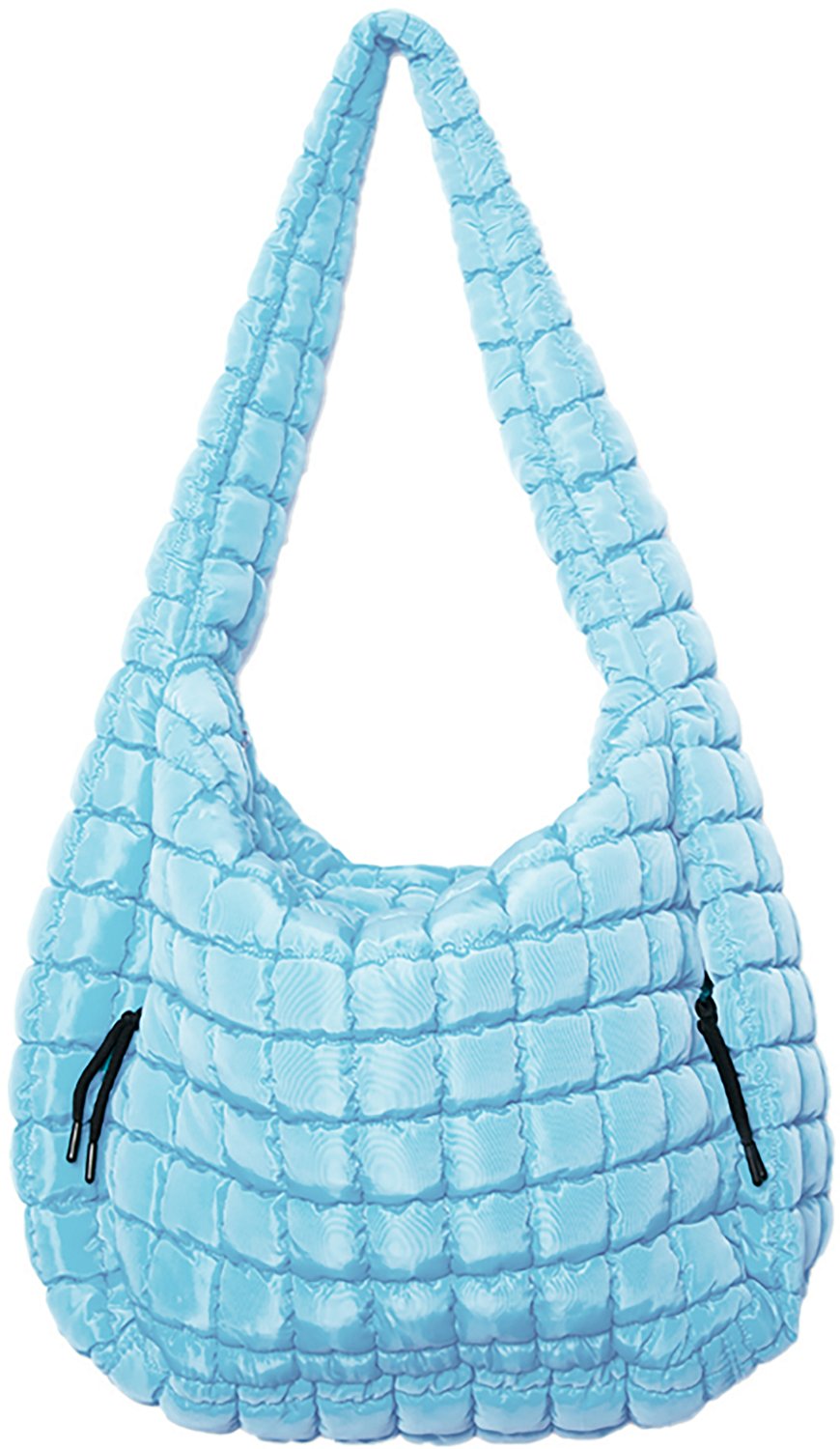Add a stylish item to your on-the-go storage collection with the Katydid Quilted Tote Bag. Its high capacity gives you ample room for various objects, and its water-resistant interior lining helps to keep whatever you put inside safe. The two interior and exterior pockets bolster the bag's packing options, and the 27-inch strap simplifies carrying by hand or over the shoulder.