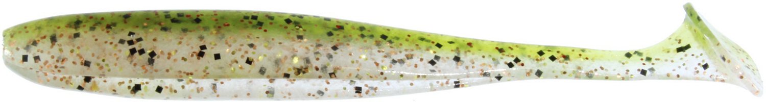 Reel in the freshwater bass with the Keitech Easy Shiner Unrigged Plastic Swim Baits 7-Pack, which feature an asymmetrical body shape and great tail action to attract fish. These swim baits are made of different types of salted plastics in a 2-tone design for optimal balance and action. 4".