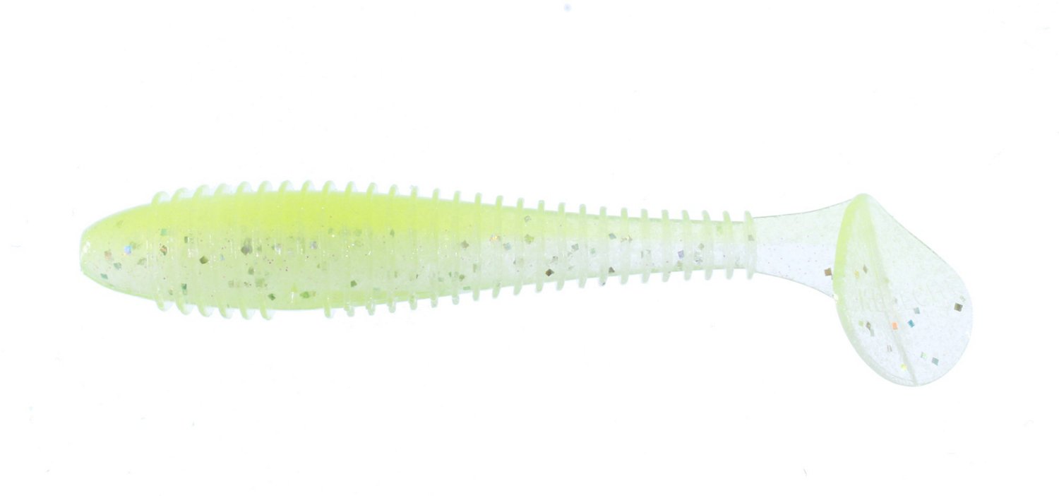 Go after freshwater bass with the Keitech Fat Swing Impact Unrigged Plastic Swim Baits 6-Pack, which feature a fat body with strong swimming action to attract fish. These swim baits can also be used as a Texas-rigged worm or as a jig trailer. 3.8" long.