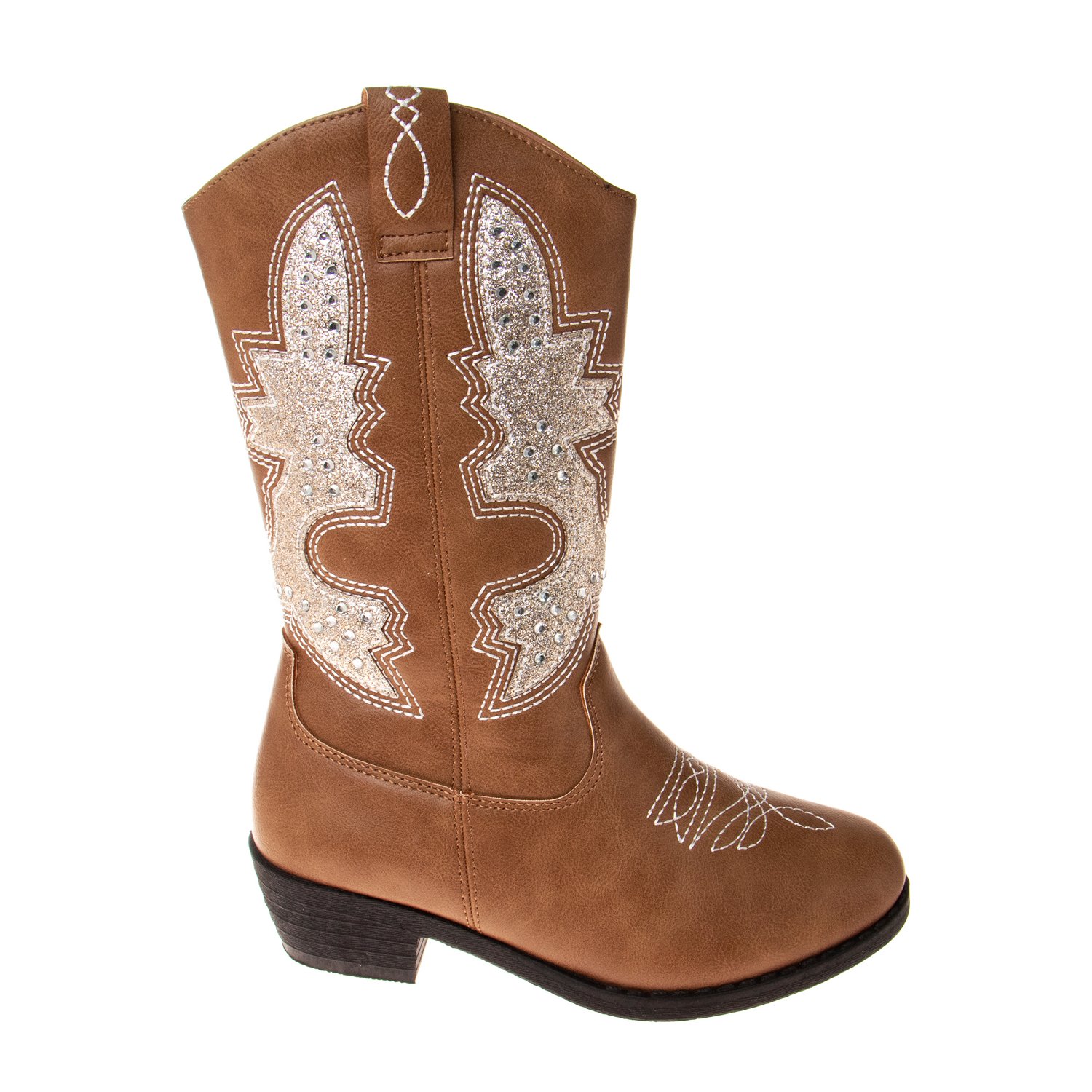 Have your little one looking their best when they wear the Kensie Girl Cowgirl Boots. Their man-made upper enhances durability. The almond toe design provides room to grow, and their zipper closure offers a snug fit. The stitched details with rhinestones add a touch of sparkle.