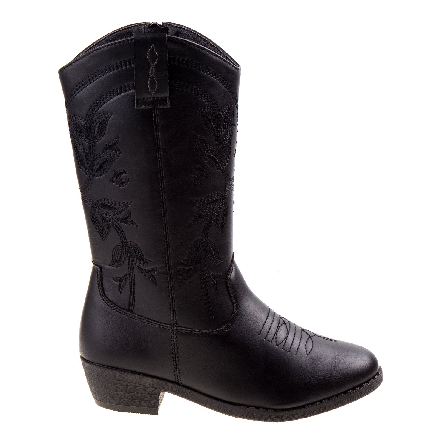 Let your little one look their best when they wear the Kensie Girl Toddlers' Side-Zip Cowgirl Boots. Their man-made upper enhances durability. The high-quality padding allows for an all-day wear, and their fun top stitching reinforces the seams. The almond toe design offers a comfortable wear.