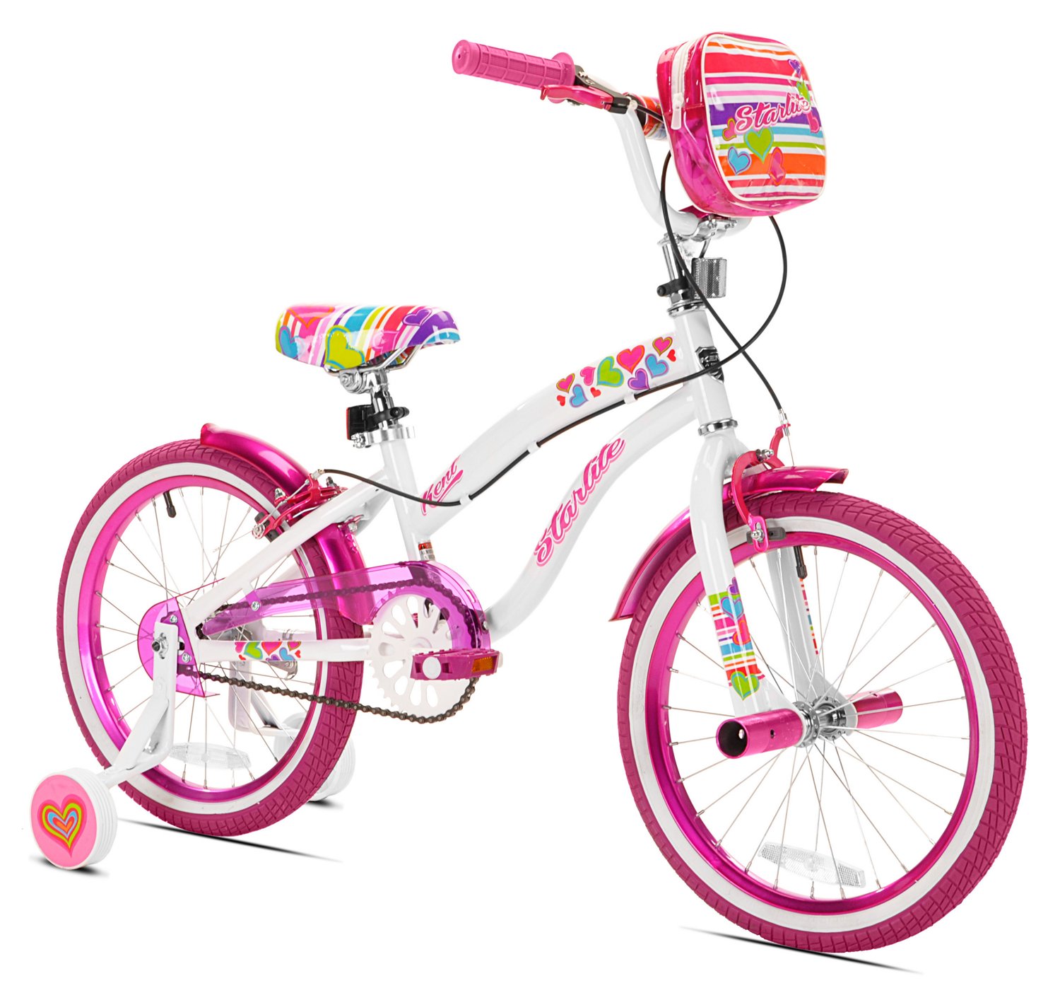 She'll have a great time riding around the neighborhood on the KENT™ Girls' Starlite 18" Bike, which features a rugged steel BMX frame and a 4-bolt stem to help ensure long-lasting use. The front and rear hand brakes combine with the rear coaster brakes to provide her with fast, safe stopping, while the handlebar pad gives added safety.