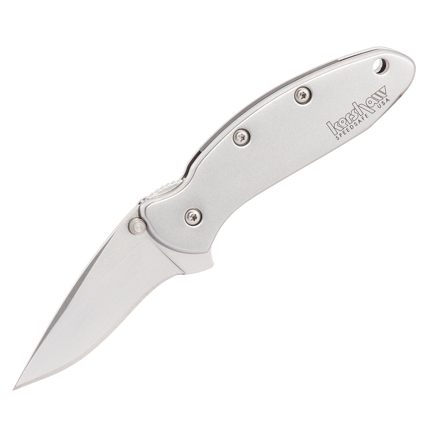 The Kershaw Chive Folding Knife features a folding straight-edge blade made from 420HC stainless steel that offers good edge retention and easy sharpening. The 410 stainless-steel handle provides strength, and the Safety Tip Lock ensures the blade stays securely inside the handle until released. The SpeedSafe ambidextrous opening system and the thumb stud provide smooth and easy opening. 1.9 oz. 2" blade length. 4.81" overall length.