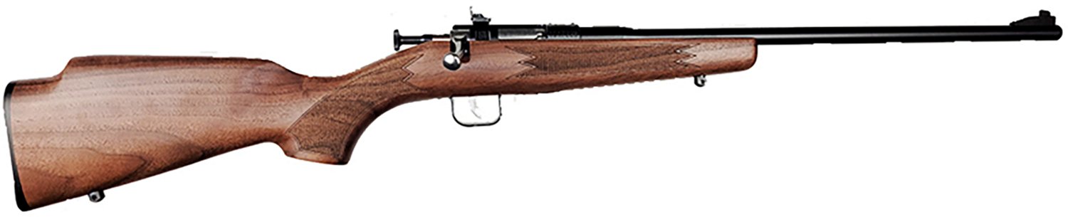 The Keystone Chipmunk .22 LR One Shot Rifle is a bolt-action rifle featuring an EZ loader and a crossbolt safety. The stock is made of deluxe walnut, and the receiver is drilled and tapped.