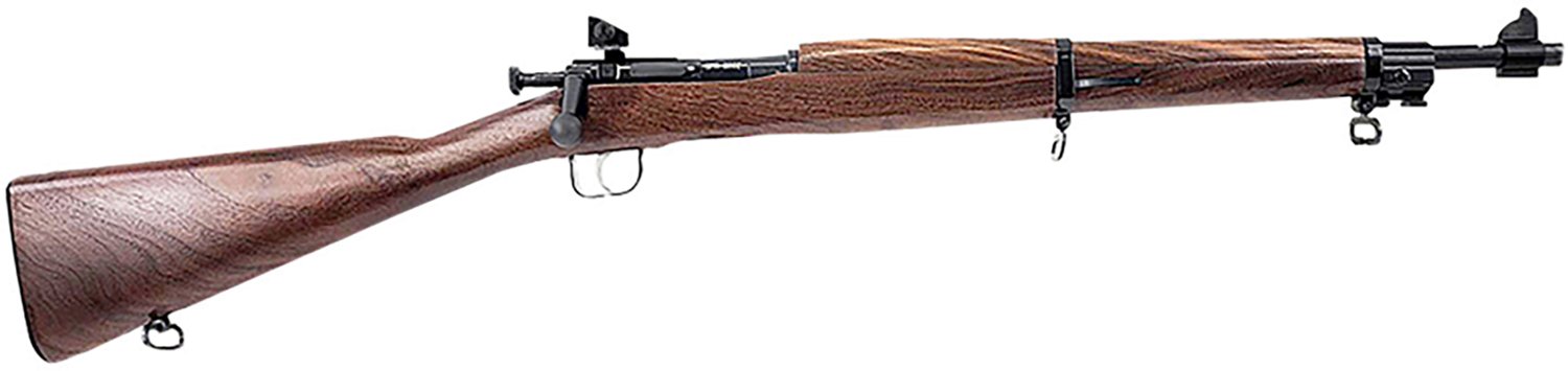 The Keystone Mini Springfield 1903 .22 LR Single Shot Rifle boasts single shot action and has a single round capacity. It's built with a threaded steel barrel, steel receiver and adjustable open rifle sights.