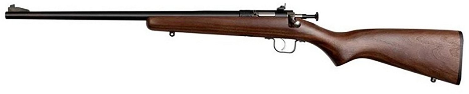 The Keystone Youth Chipmunk .22 LR Bolt Action Rifle Left-handed is bolt action and has a single-round capacity. It's built with a stainless steel barrel and receiver and a fixed wood stock. Fixed front and adjustable peep rear sights and a firing pin safety complete the design.