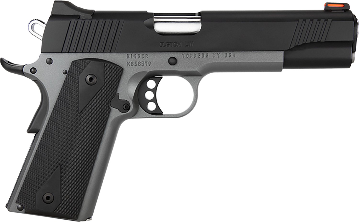 Get involved in shooting sports with this Kimber Custom LW Shadow Ghost .45 ACP Semiautomatic Pistol. It features an aluminum and rubber frame with a synthetic grip, along with a 5-inch barrel, a 3-hole aluminum trigger, a fixed red fiber-optic front sight and a white-dot rear sight. It also has front serrations and comes with one 8-round magazine.