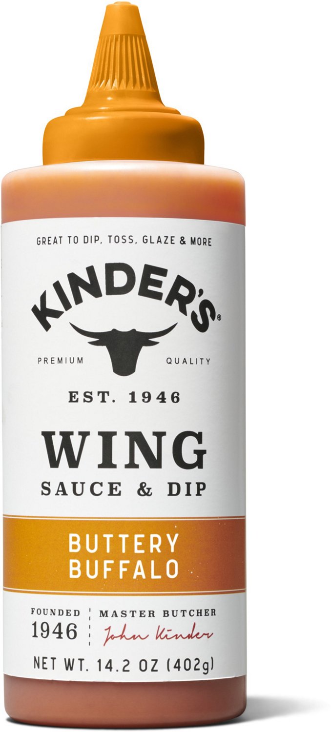 Enhance your kitchen condiments with the Kinder's 14 oz Buttery Buffalo Wing Sauce. The combination of anaheim chilis and red jalapeno provides necessary spice, and the garlic adds a distinct flavor. The multiuse sauce can be used on a variety of chicken dishes or as a spread on your sandwich.