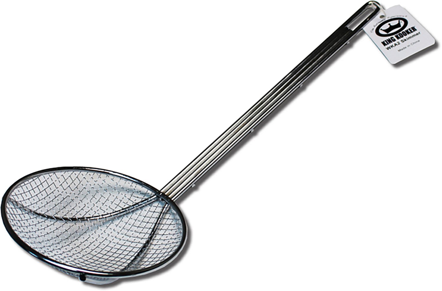 Prepare meals at home or at the campsite with the King Kooker 20 in Skimmer with 6 in Wire Mesh Bowl. It’s designed for skimming, straining and stirring foods like soups, stews, vegetables and more, and the chrome-plated design offers lasting durability.