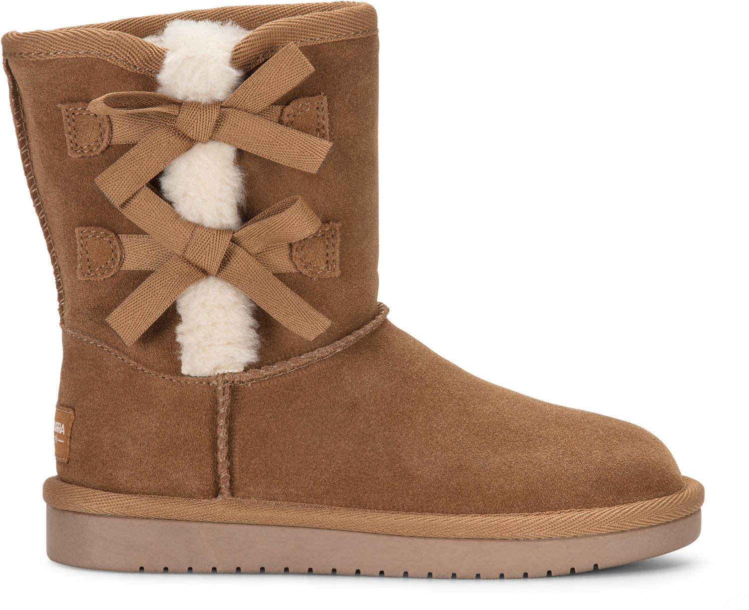 She can step in style with the Koolaburra by UGG Girls' Victoria Short Pull On Boots. The fuzzy suede uppers are elevated by exposed sheepskin accents and large bows for a feminine, flirty look. Faux fur adds warmth around her feet, while TPR soles create a sturdy base.