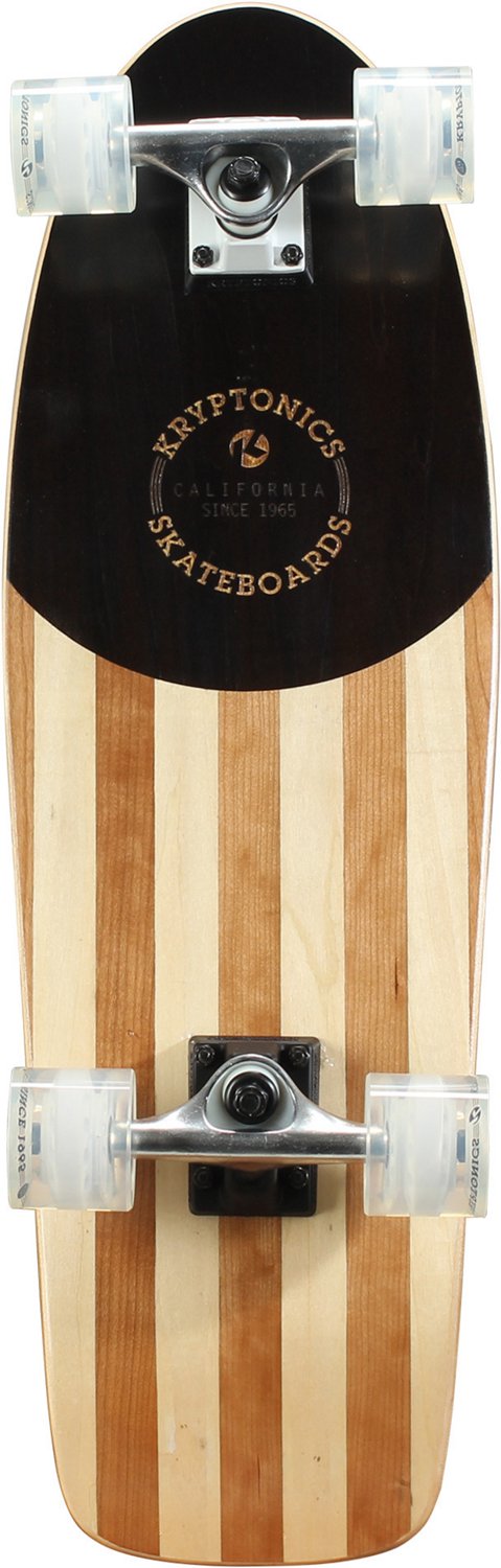 The Kryptonics In-Lay Cruiser Boss 28 in Skateboard delivers the performance you need to channel your inner pro skater. You'll feel supported as you roll down sidewalks and make landings on the wide, maple cruiser deck, and the 62-millimeter x 51-millimeter PU wheels are secured by 5-inch trucks for durability.