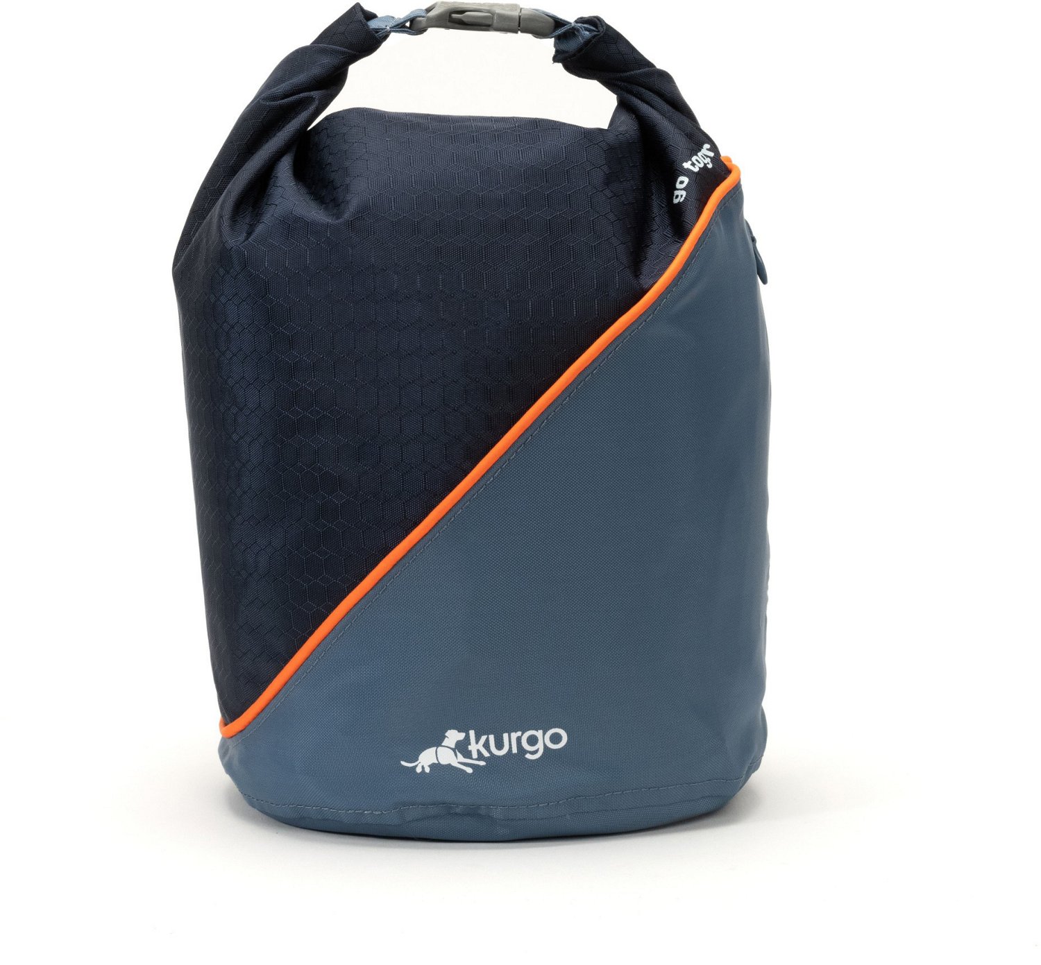 Keep your pet food fresh while on the go with a Kurgo Kibble Carrier Dog Food Travel Bag. This durable ripstop sack protects up to 5 pounds of kibble. Its roll top ensures lasting freshness while a food-safe PEVA liner prevents oil seepage. When the adventure is over, simply machine wash for easy cleanup.