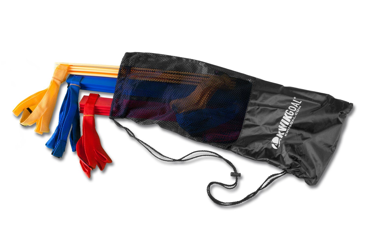 Great for quick-burst speed training and lateral movements, the Kwik Goal Mini Ladders 3-Pack feature 3 different-colored ladders, each with 4 fixed rungs. The foldable design offers easy transport to and from the field. Carry bag included.