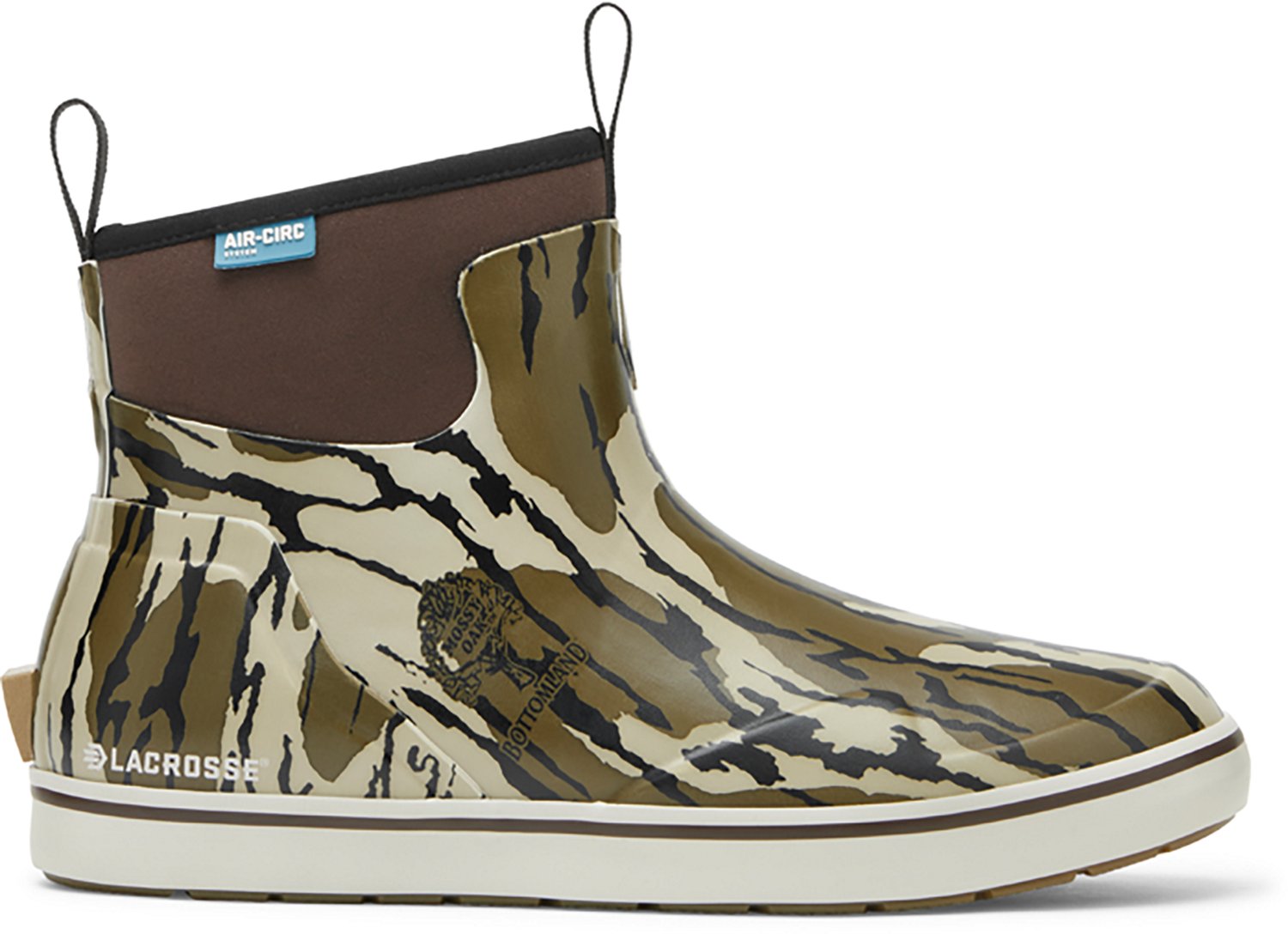 Pull on the LaCrosse Men's Alpha Camo Deck Boots and head out into the wild. These boots are designed with foredeck outsoles with slip-resistant traction patterns to help keep you upright, and the Mossy Oak® Original Bottomland camo pattern is helpful for hunters who are looking to stay concealed.