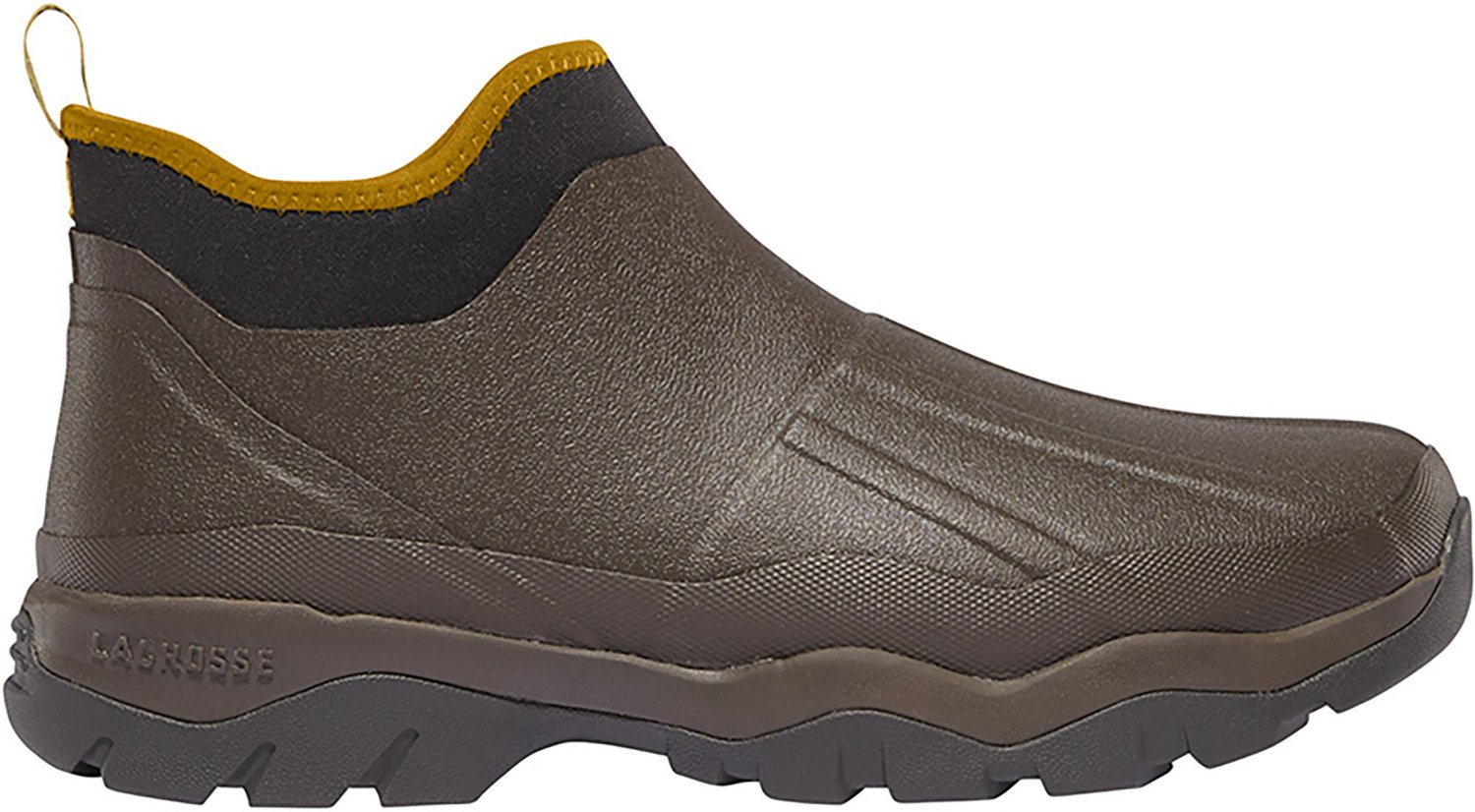 Stay dry during your adventures with the LaCrosse Men's Alpha Muddy 4.5 in Outdoor Boots. These boots feature premium waterproof rubber uppers for durability that stays dry. The insulating neoprene interiors provide warmth and comfort, while the Aqua outsoles shed water and debris while maximizing surface contact for sturdy traction.