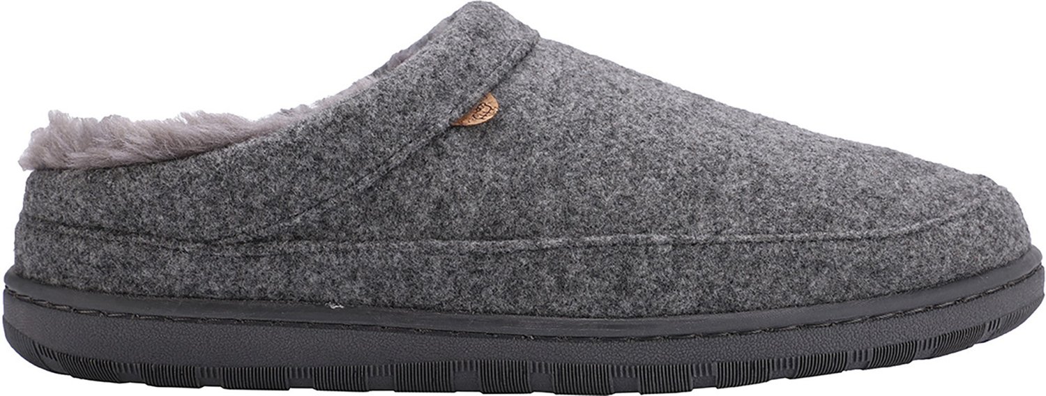 Keep your feet warm in the Lamo Men's Julian Clog Wool Slippers. These clog slippers feature faux boiled wool blend uppers and premium faux fur linings for comfort and warmth. The TPR Comfort-Flex outsoles provide durability.