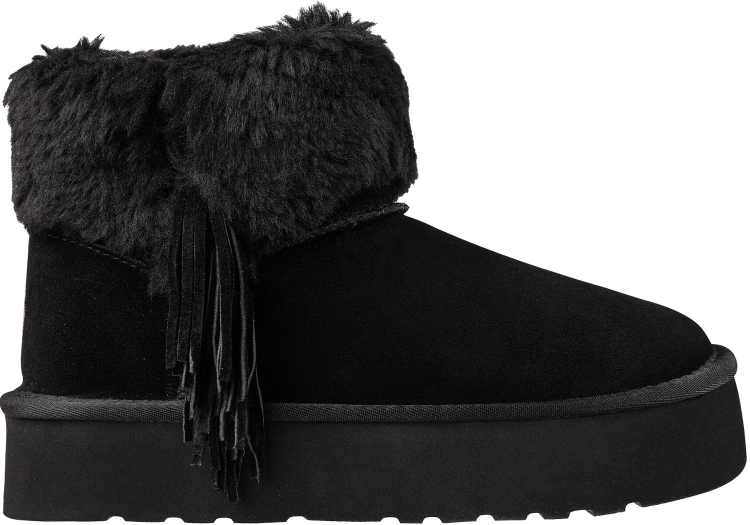Take your style to new heights with the Lamo Women's Amari Fur Platform Tassel Boots. These stylish ankle boots have durable suede uppers and rubber outsoles to handle all of life's adventures. The faux fur linings and water-resistant finish keep your feet warm and dry, while the foam footbeds make every step comfortable. The 1.5-inch platform and tassels create an elegant look.
