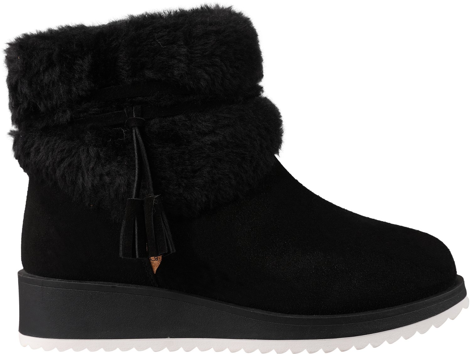 Cradle your feet in stylish comfort with the Lamo Women's Bailee Fur Wedge Boots. These soft boots have faux fur linings, faux fur rabbit collars and foam insoles for all-day comfort. Suede uppers and TPR outsoles offer lasting durability, and the 1.5-inch wedge platform creates style.