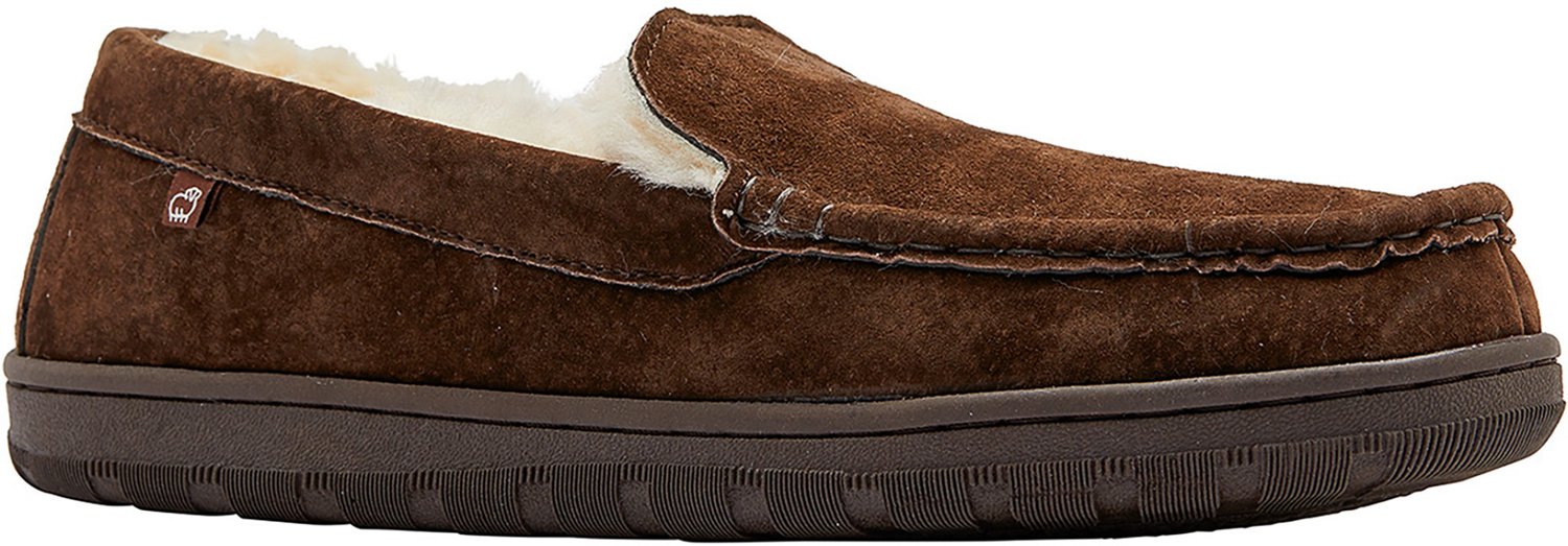 Stay comfortable wearing the Lamo Men's Harrison Moccasin Slippers. These moccasin slippers feature rich suede uppers and premium faux fur linings for comfort and warmth. The TPR outsoles provide durability.
