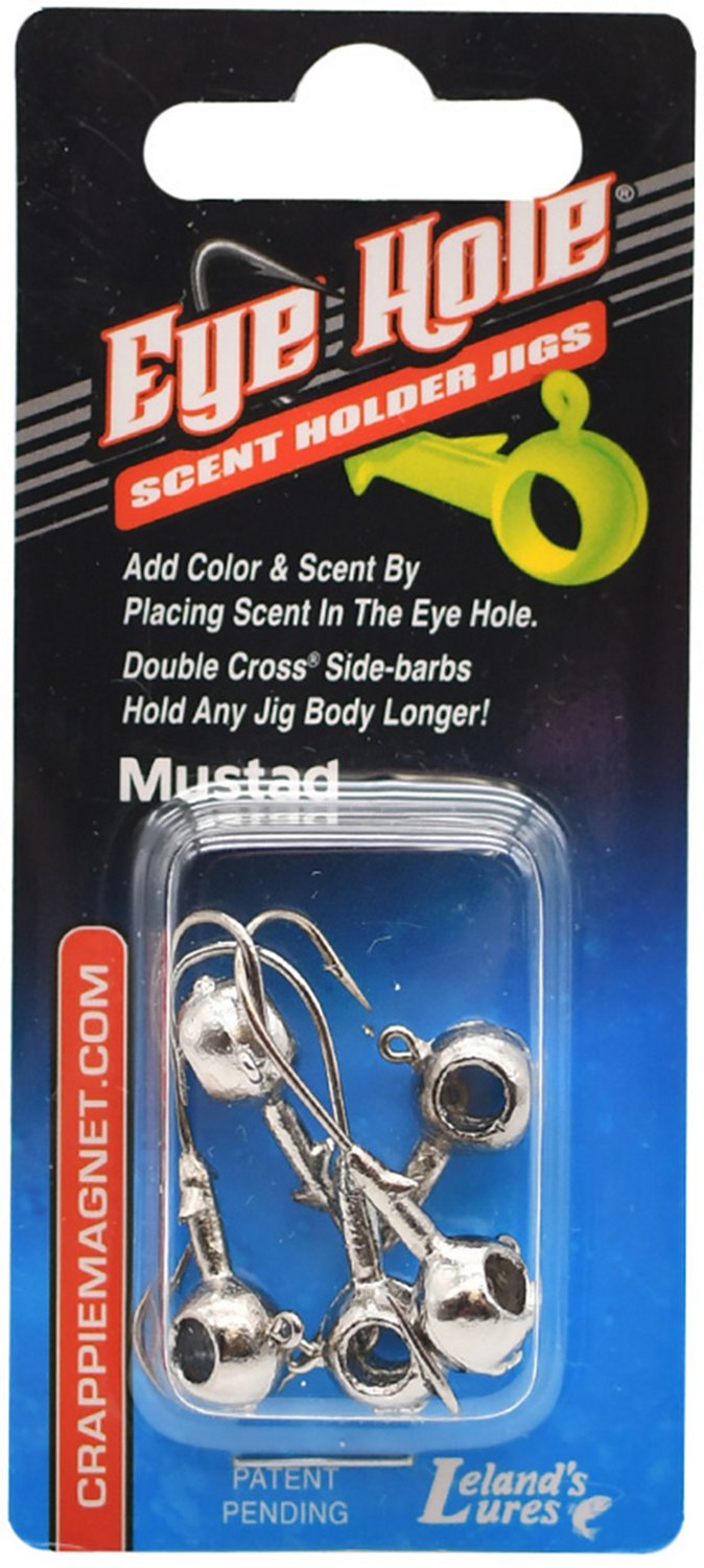 Upgrade your old jigheads to the Leland Lures Eye Hole Round Head 1/16 oz Jigheads 5-Pack. These jigheads have eye holes that can hold scent, urging fish to swim up and see what smells delicious, and the Double Cross Side-barbs are strong enough to make sure your chosen jig remains on the hook as fish take a bite. The Mustad hooks make sure fish stay stuck as they bite down.