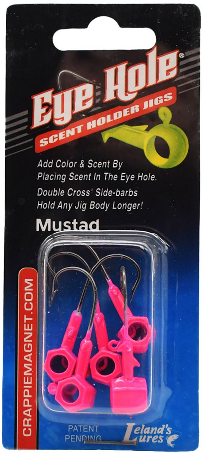 Upgrade your old jigheads to the Leland Lures Eye Hole Round Head 1/16 oz Jigheads 5-Pack. These jigheads have eye holes that can hold scent, urging fish to swim up and see what smells delicious, and the Double Cross Side-barbs are strong enough to make sure your chosen jig remains on the hook as fish take a bite. The Mustad hooks make sure fish stay stuck as they bite down.
