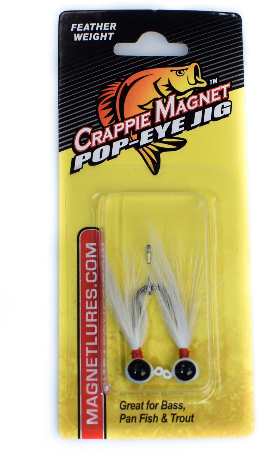 Experience a successful day on the water with the Leland Lures Pop-Eye Jigs 2-Pack by your side. The long feathers create a natural appearance as they fall into the water, and the extra-large eye adds an additional realistic touch. Weighs 1/16 ounces.